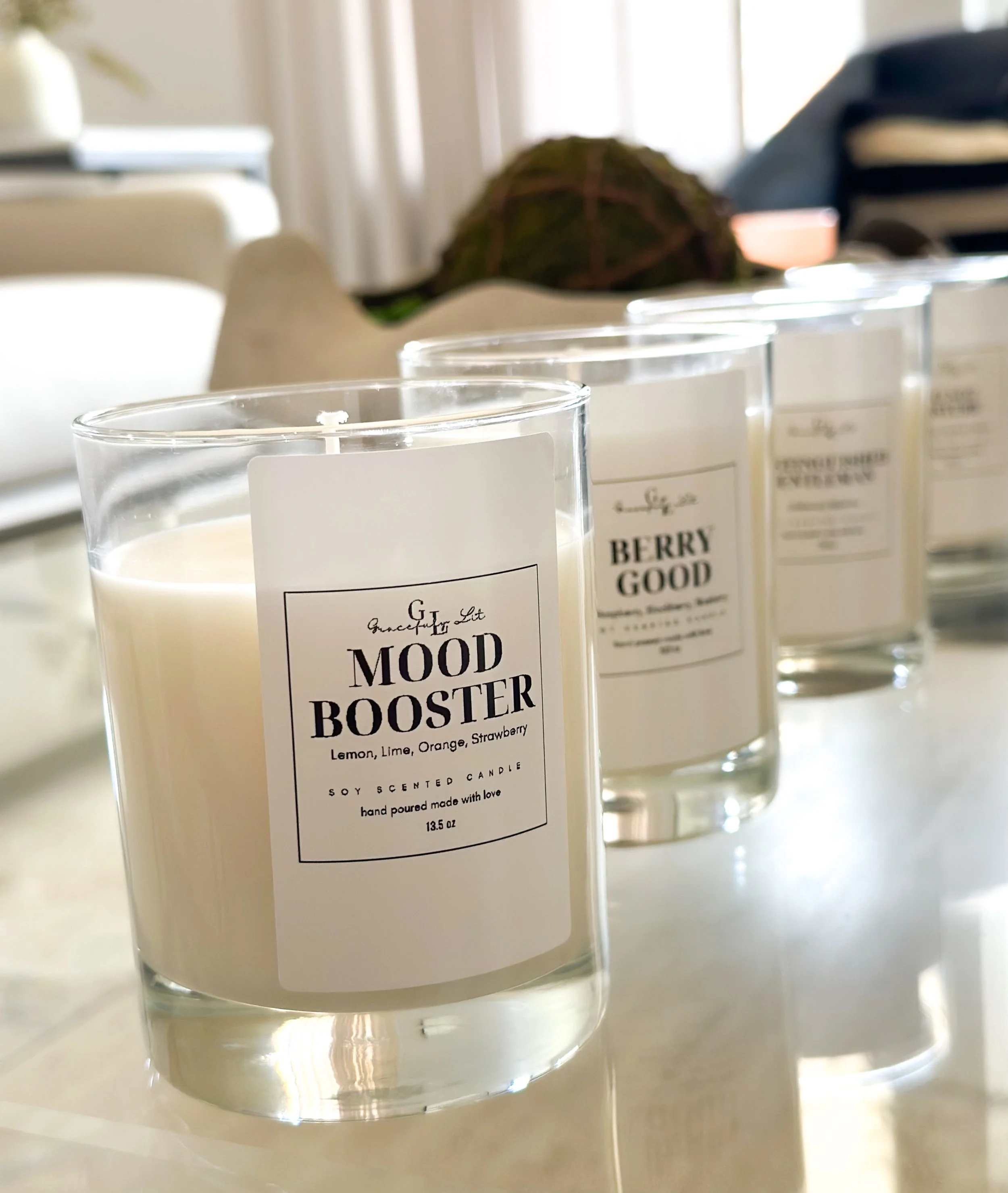 Premium 100% Soy Wax Candles Guaranteed to Create A Memorable Experience In A Luxurious Way. Be The Light That Shines And Remember To Give Yourself Some Grace.